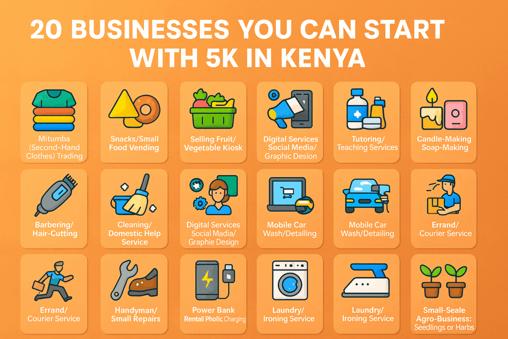 Starting a business on a shoestring budget can seem daunting, but in Kenya, many entrepreneurs get off the ground with very modest capital by focusing on small-scale, service-oriented, or informal ventures. With KSh 5,000 (or thereabouts), you can begin something that, with diligence, can grow into a sustainable microenterprise. The key is to choose a business with low fixed costs, minimal equipment, easy to market, and with demand in your local community.